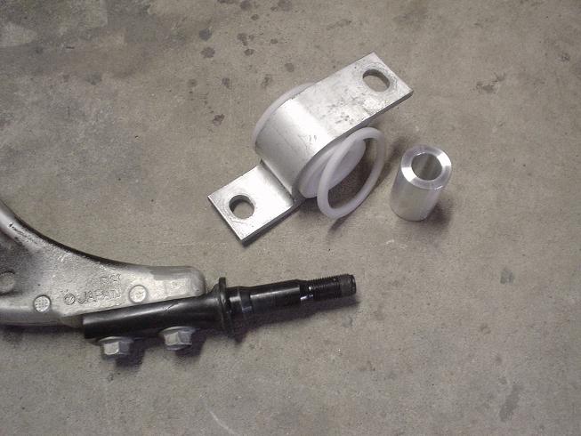 材質はカラー(筒)こそ金属製ですがブッシュ部分は樹脂製。これでも立派にその役目を果たすのです。もちろん、グリスなどのケアは注意が必要でが、これで高次元のハンドリングが得れるのです。(写真はインプレッサフロントロワーアーム用パーツ)